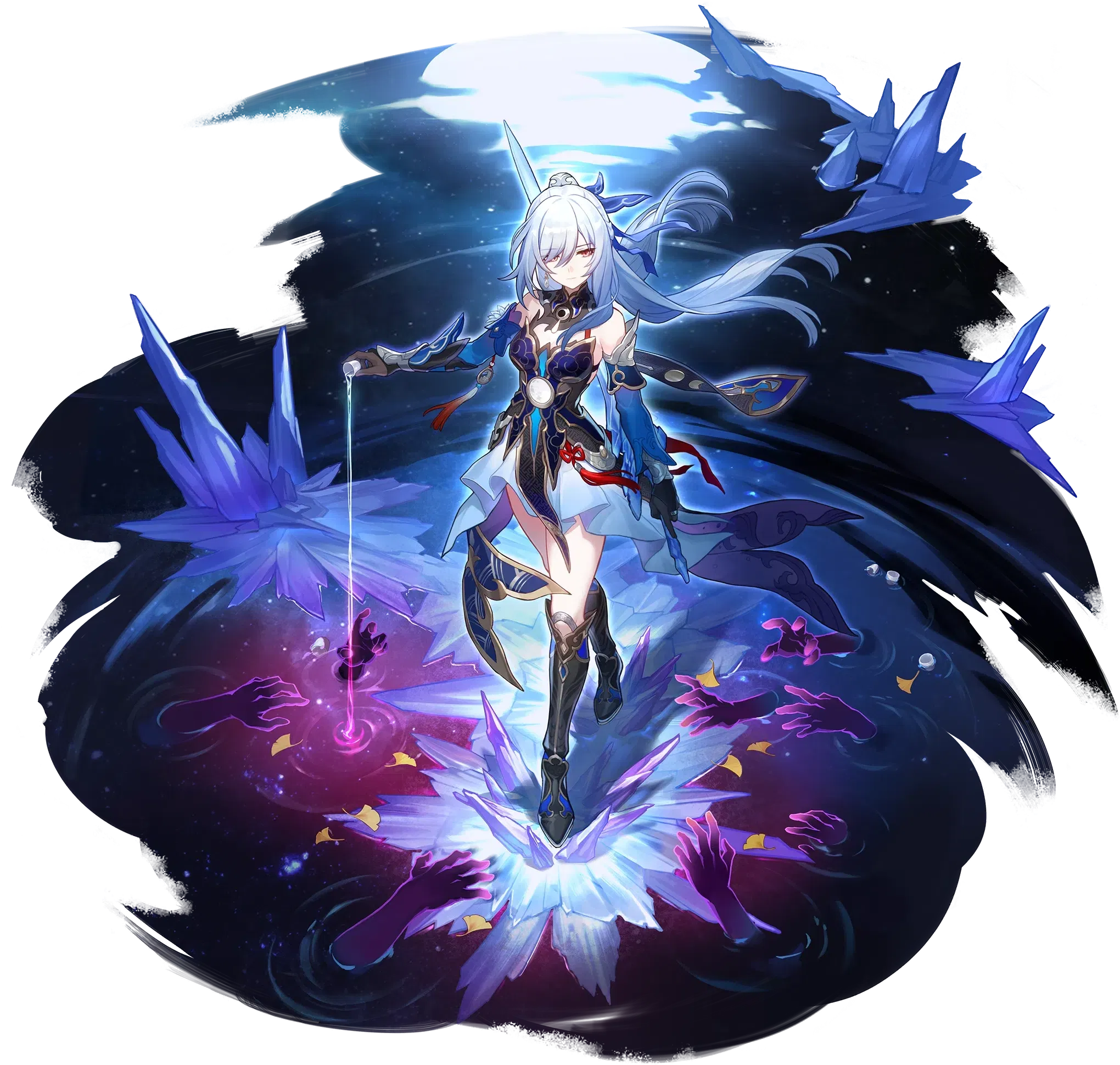 Gây Sát Thương Băng lên 1 kẻ địch chỉ định bằng 125% Tấn Công của Jingliu, đồng thời gây Sát Thương Băng cho mục tiêu ở gần bằng 62.5% Tấn Công của Jingliu. Tiêu hao 1 tầng Sóc Vọng. Thi triển kỹ năng này không tiêu hao Điểm Chiến Kỹ.
